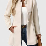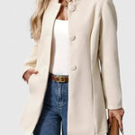• Minimalističen kroj – čista silhueta brez ovratnika za sodoben videz