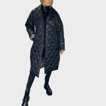 Prefinjene podrobnosti: klasičen ovratnik, natančno prešivanje in diskretno zapenjanje z gumbi dodajo pridih razkošja.