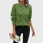 Brezčasen pulover s pikčastim vzorcem, mehak in udoben. S sproščenim krojem in univerzalnim dizajnom ga enostavno kombiniraš z jeansom, krili ali hlačami. Idealno za vsakdan in sproščene trenutke, vedno z eleganco in udobjem.